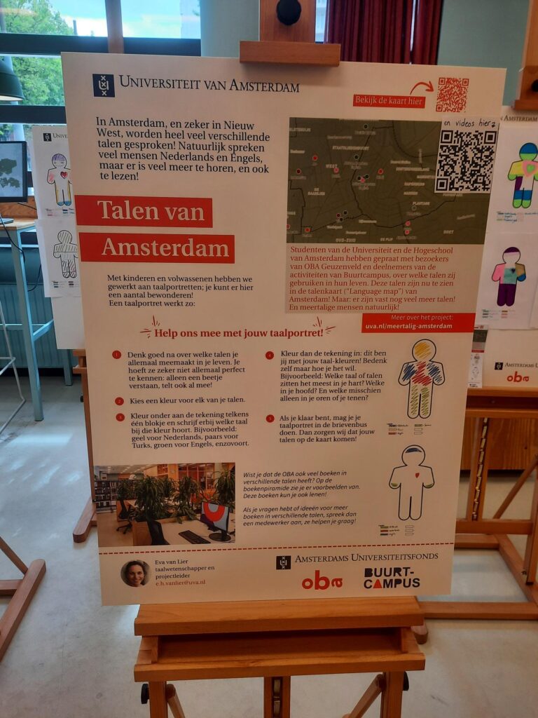 Op 4 september heeft het project Meertalig Amsterdam hun resultaat gepresenteerd in de OBA Geuzenveld. Hier zijn wat momentopnames tijdens de opening! De tentoonstelling is te zien tot 16 oktober 2025. Bedankt voor je deelname aan de opening en ik hoop dat je door de tentoonstelling geïnteresseerd raakt in taaldiversiteit.